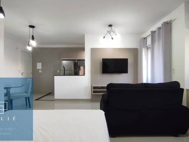 O flat possui 56m², 1 dormitório amplo com banheiro, integrado com a sala de TV, cozinha funcional, varanda, área de serviço e 1 vaga de garagem descoberta. Revestido com porcelanato, ar condicionado, iluminação plafon, portas e janelas de vidro com esquadrias de alumínio na cor branca, cozinha totalmente mobiliada e armários planejados feitos sob medida.